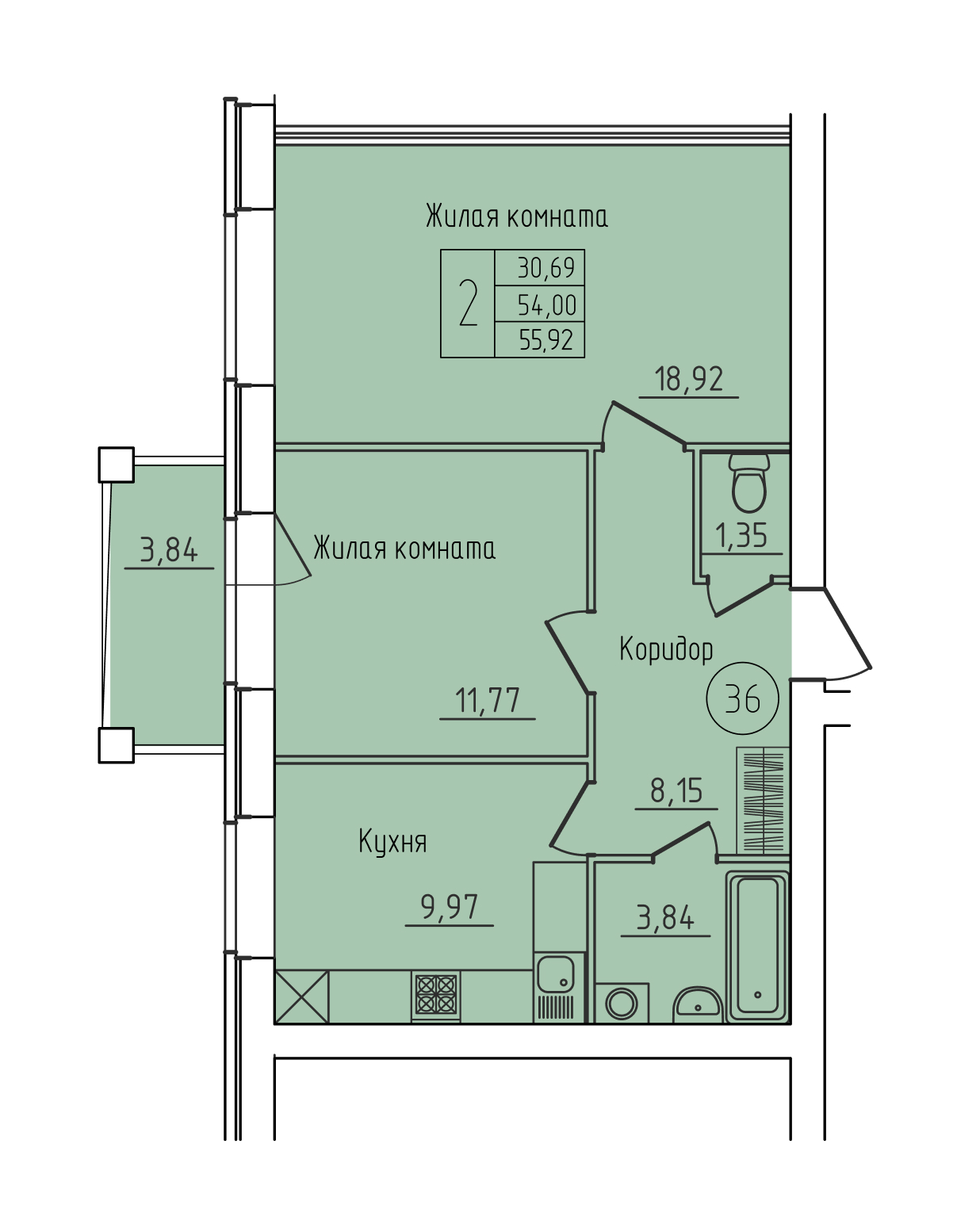 55.92 м²