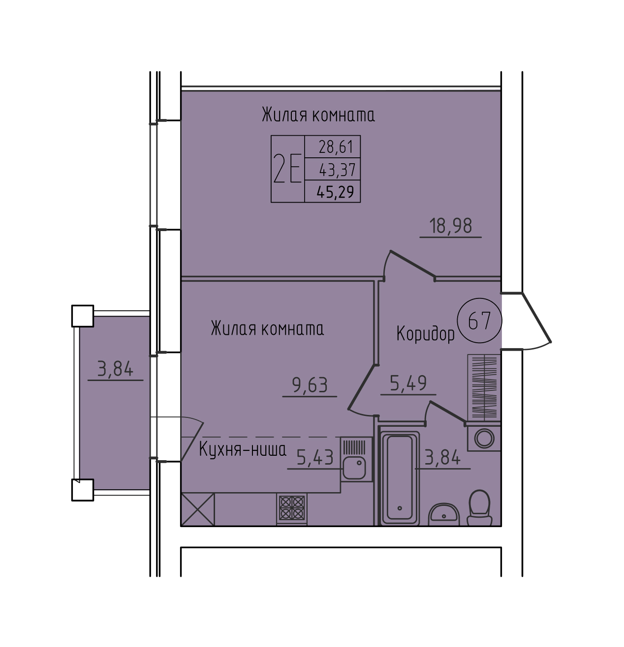 45.29 м²